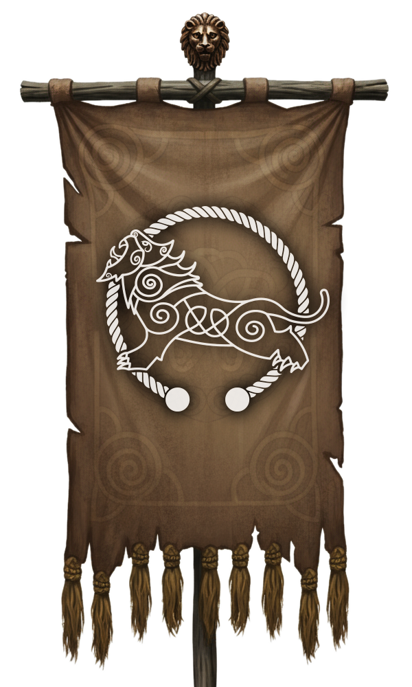 Das Stammeswappen der Rauriker vereint diese Verbindungen in Form eines Löwen im Banner, der Stärke und Mut symbolisiert, sowie einer weißen Raute, die sowohl als Stammeszeichen als auch als Element der rituellen Stammesbemalung dient. Diese Symbole verleihen den Raurikern eine unverwechselbare Identität, die sowohl von realen Vorbildern als auch von unserer Kreativität geprägt ist.